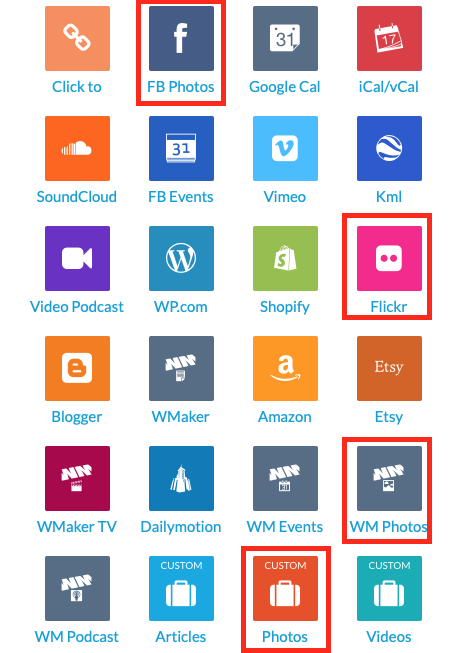 Nota: Si tienes conocimientos técnicos, también puedes usar la fuente Fotos debajo de Fuentes Personalizadas > Fotos. Esta opción es solamente para desarrolladores. Para más información, por favor lea como crear feeds personalizados.