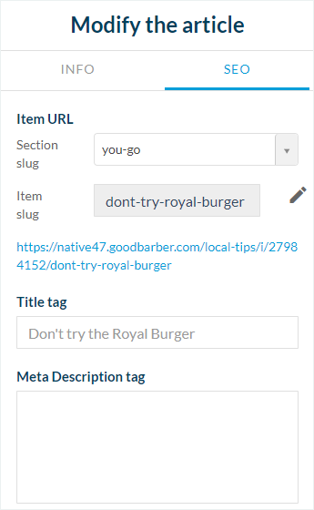 3 - Cambia el tag descripción meta de la pagina de tu item.