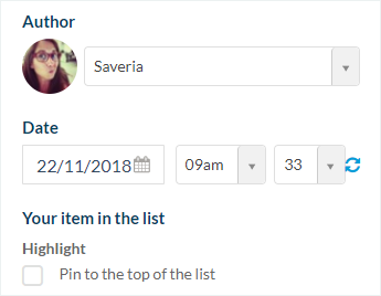 3 - Elige el autor del item desde los miembros de tu equipo, o elige la opción "Autor independiente" para entrar un nombre manualmente.