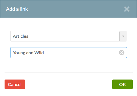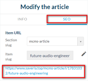 Si no se selecciona ningún elemento en particular, el enlace se abrirá en la sección "Artículos "