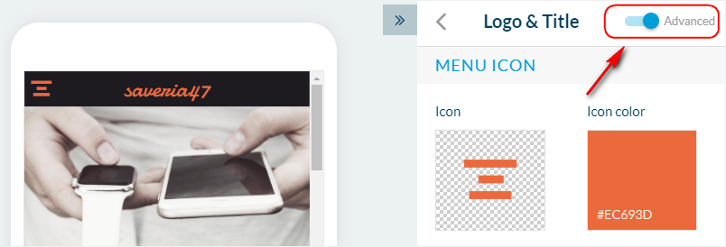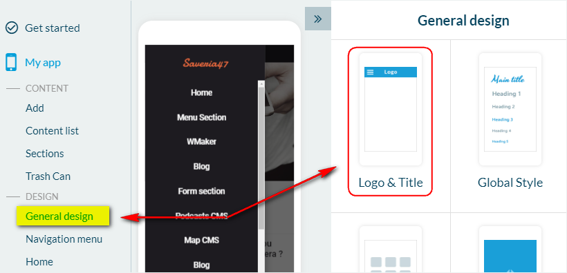 1 - Abre el menú izquierdo swipe Mi app > Diseño > Diseño General