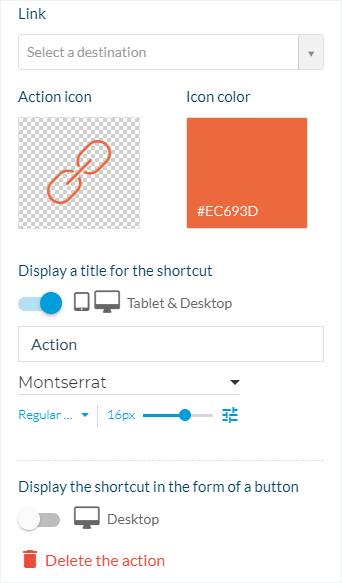 2 - Escoge el enlace de tu acceso directo (destino de acceso directo) desde el menú desplegable