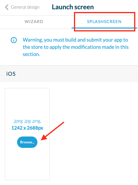 La splashscreen | pantalla de lanzamiento de la app (solo planes nativos)
