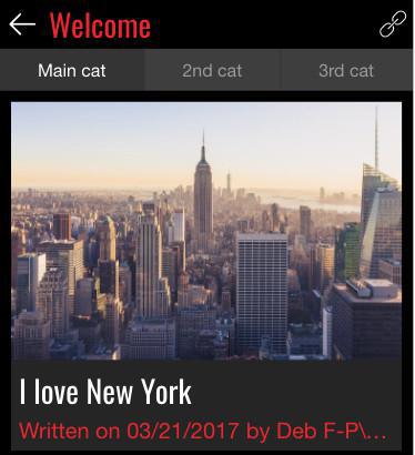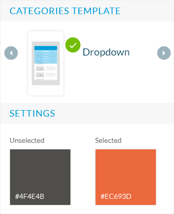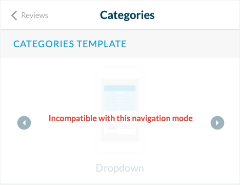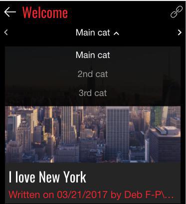 Mostrará tu lista de categorías en la parte superior de tu aplicación en un formato de menú desplegable.