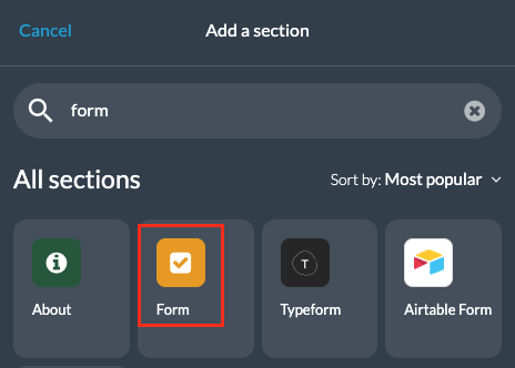 3 - Añade una sección escogiendo "Formulario" en los items del contenido