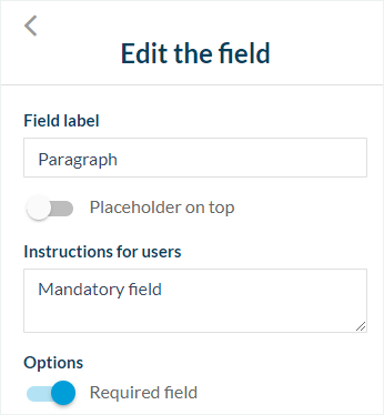 En cuanto se activa el botón "Campo obligatorio", un asterisco aparece justo al lado del campo.