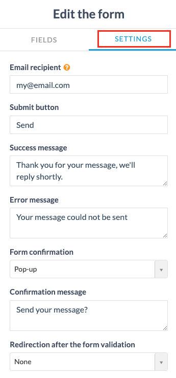 Completa tu dirección de correo electrónico para recibir una notificación cada vez que un usuario envíe un formulario.