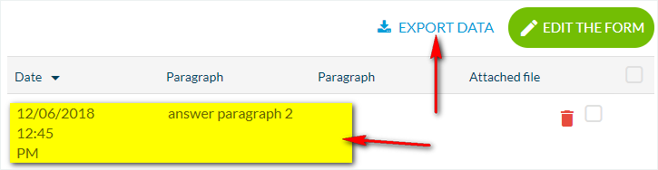 2 - Haciendo clic en una línea especifica en tu back office para ver la respuesta al formulario.