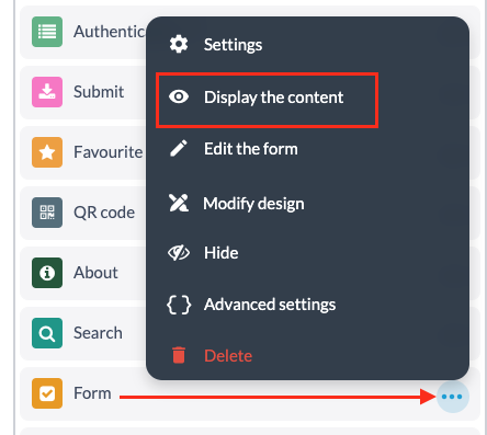 1 - Haz clic en los 3 puntos en tu lista de secciones, y luego "Modificar el formulario"
