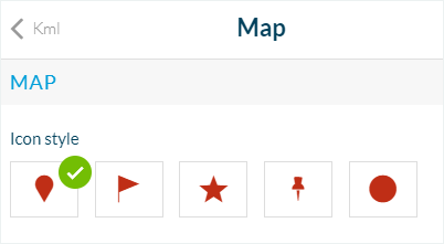 Haz clic en la plantilla de mapa, puedes seleccionar el icono que desees, tu color o cargar un icono personalizado para tus ubicaciones en la vista de mapa.