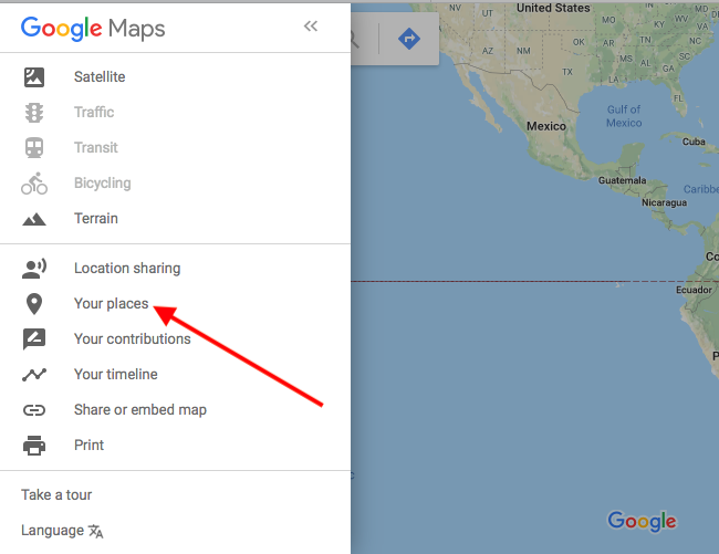 En el menú, haz clic sobre "Tus lugares".