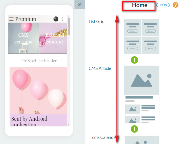 1. Ve al menú Mi app> Contenido> Secciones
