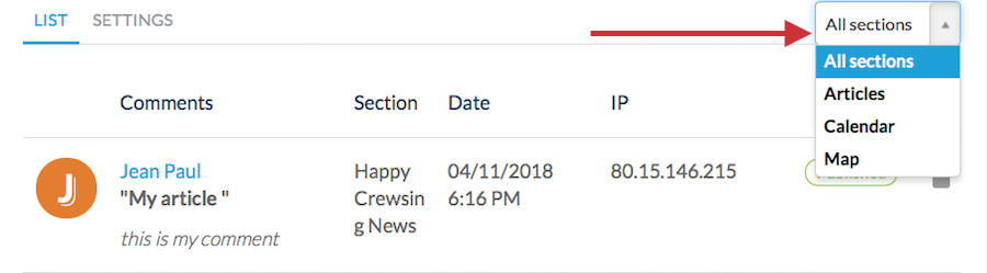 1. Ve al menú izquierdo Contenido > Comentarios > Desplegable
