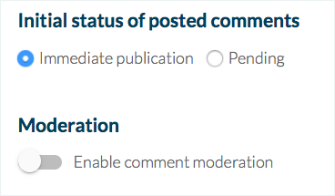 3. Escoge si la publicación de los comentarios tomará tiempo inmediatamente o elegir la opción pendiente (entonces puedes comprobar los comentarios antes que sean publicados)