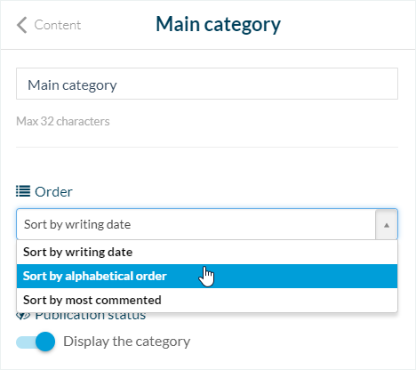 -Para las otras categorías (ajustes de cada categoría): por fecha de redacción, por posición (puedes reordenar el contenido manualmente), por orden alfabético, por más comentado.