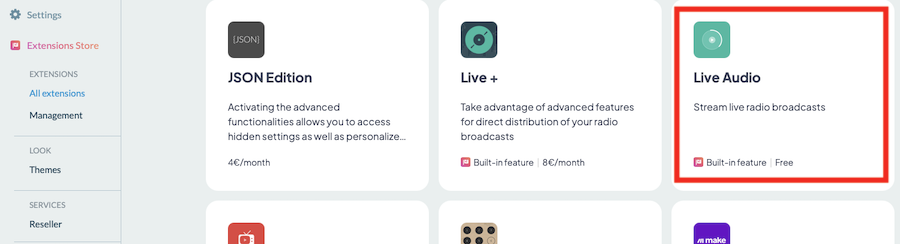 La sección Live Audio es una sección que está diseñada específicamente para transmitir audio.
