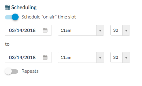Para programar tu pagina Live, ve a la pestaña Configuración, selecciona el botón de programación y sólo tienes que rellenar el horario en que estés en vivo. Puedes reprogramar automáticamente, en función de la frecuencia con que desees retransmitir.